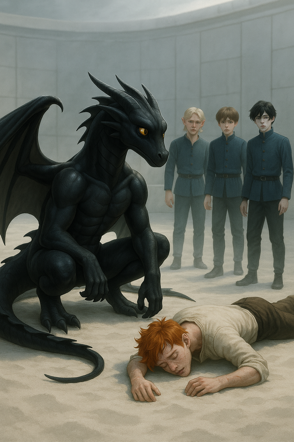Bleist smiled crookedly. Draco sat down on the sand, still looking at Kei. Panting heavily, the dragon waved his paw, which was a signal to remove the barrier. The grey shield dissipated as soon as Vi took out the appropriate crystal.