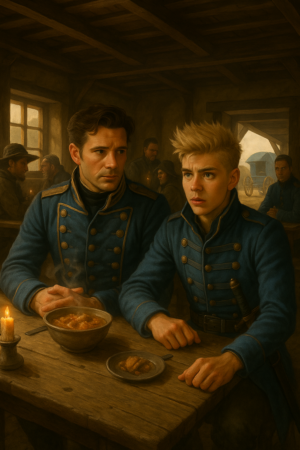 Around noon, they stopped at a roadside inn to eat something. There were other travellers in the establishment, so the arrival of a cavalcade consisting of a carriage, three loaded covered wagons and a detachment of soldiers caused some nervous reactions. Darius was grateful for the sidelong glances the soldiers cast at everyone around them, as this gave him the peace he desired and allowed him to focus on his conversation with his student. As usual, the boy had a lot of questions. After the meal, they gathered to continue their journey, and Draco, seemingly tired of the monotonous view outside the window, took out a small black-bound book and immersed himself in reading, carefully studying each page. Bleist looked outside and refrained from sighing.