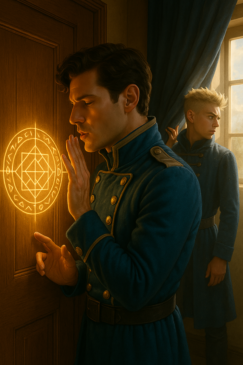 The three of them entered the room. As soon as the door closed behind them, the master whispered a few words, and a seal of golden runes glowed on the wooden surface.