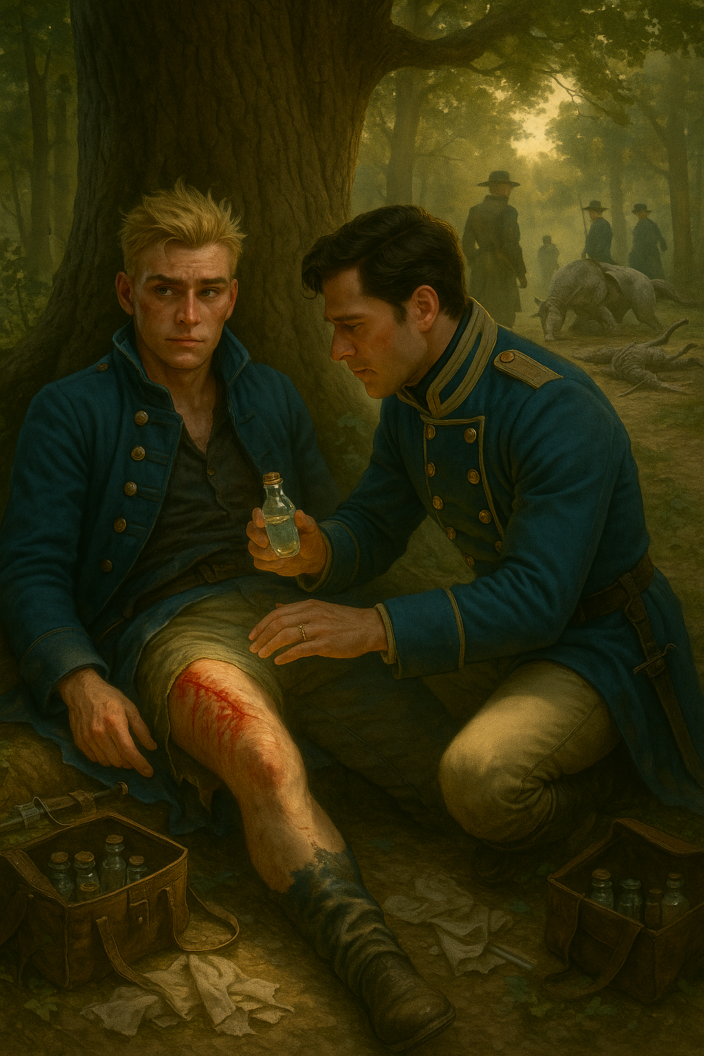 immediately pulled out a few threads that must have been pulled inside by a claw. He gently grabbed the thigh and spread the torn edges of the injury. All the while, Bleist kept glancing at the dragon. Draco watched his next steps carefully, trying not to move. It helped that the sergeant was holding him tightly.