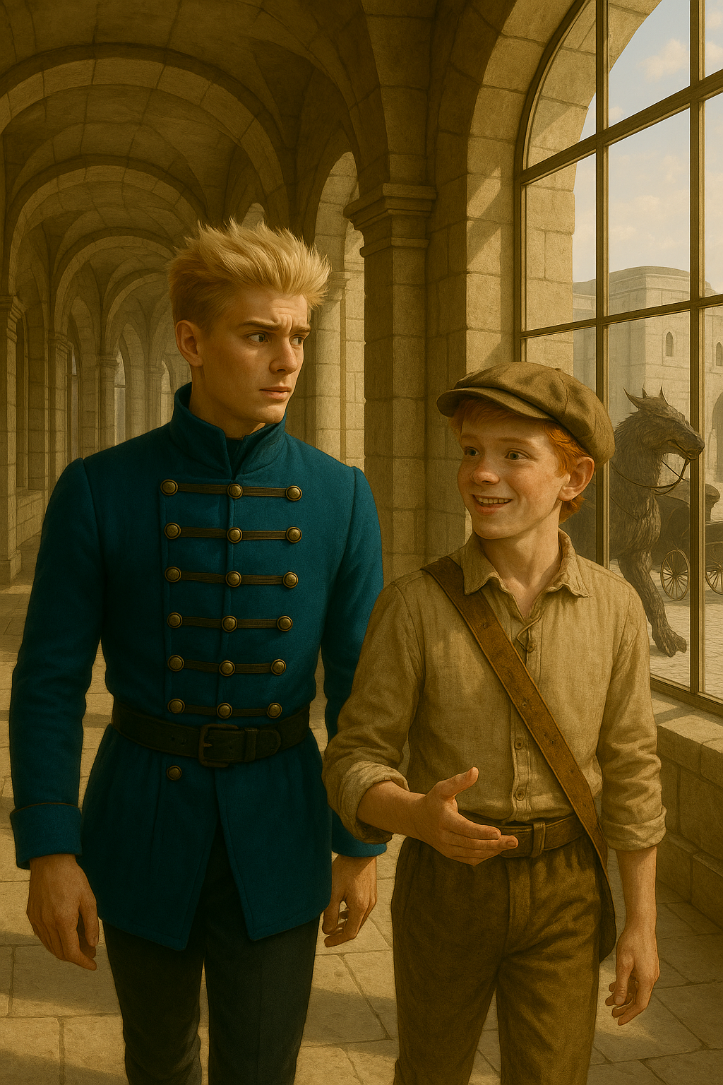The door handle gave way easily when Aiden pressed it. They stepped out into the corridor running around one of the squat towers on the first floor. Through the windows, they could see the driveway and the carriages waiting there. It was easy to spot the one belonging to Ed'heere because it was drawn by besses.