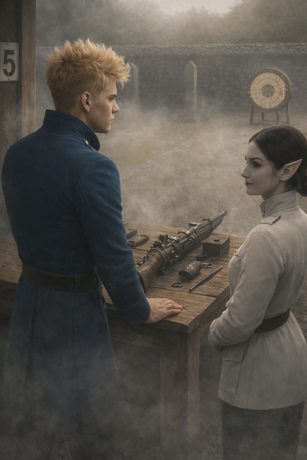 instructor calls your name. You approach the designated position and fire your shots. After checking and handing over your weapon to the assistant, you leave the shooting range. Clear? – The students nodded eagerly. – After completing the shooting exam, you will go to the magical training arena. — He pointed towards the terraced structure. — There, you will be presented with further rules. — The captain twirled his moustache. — Good luck. — He said as he left and headed towards the aforementioned arena.