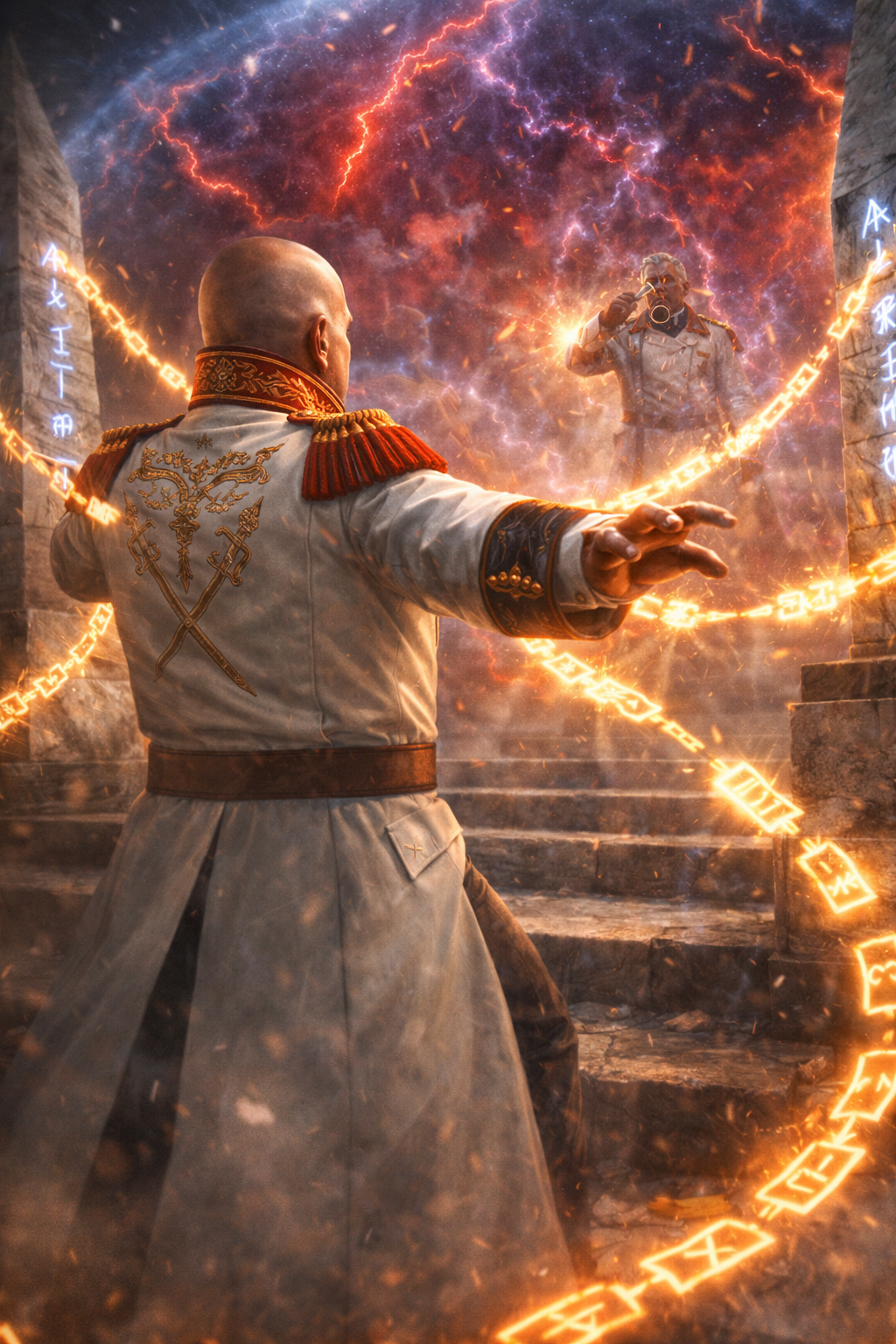 He looked at the terrace, which was lit up by increasingly frequent flashes. Hine had just stopped on the stairs at the barrier and threw his hands forward. The chains of runes flew towards the two nearest obelisks. It was clear that maintaining the spell was causing the mage problems. The second instructor passed him and rushed somewhere behind the barrier along the back wall.