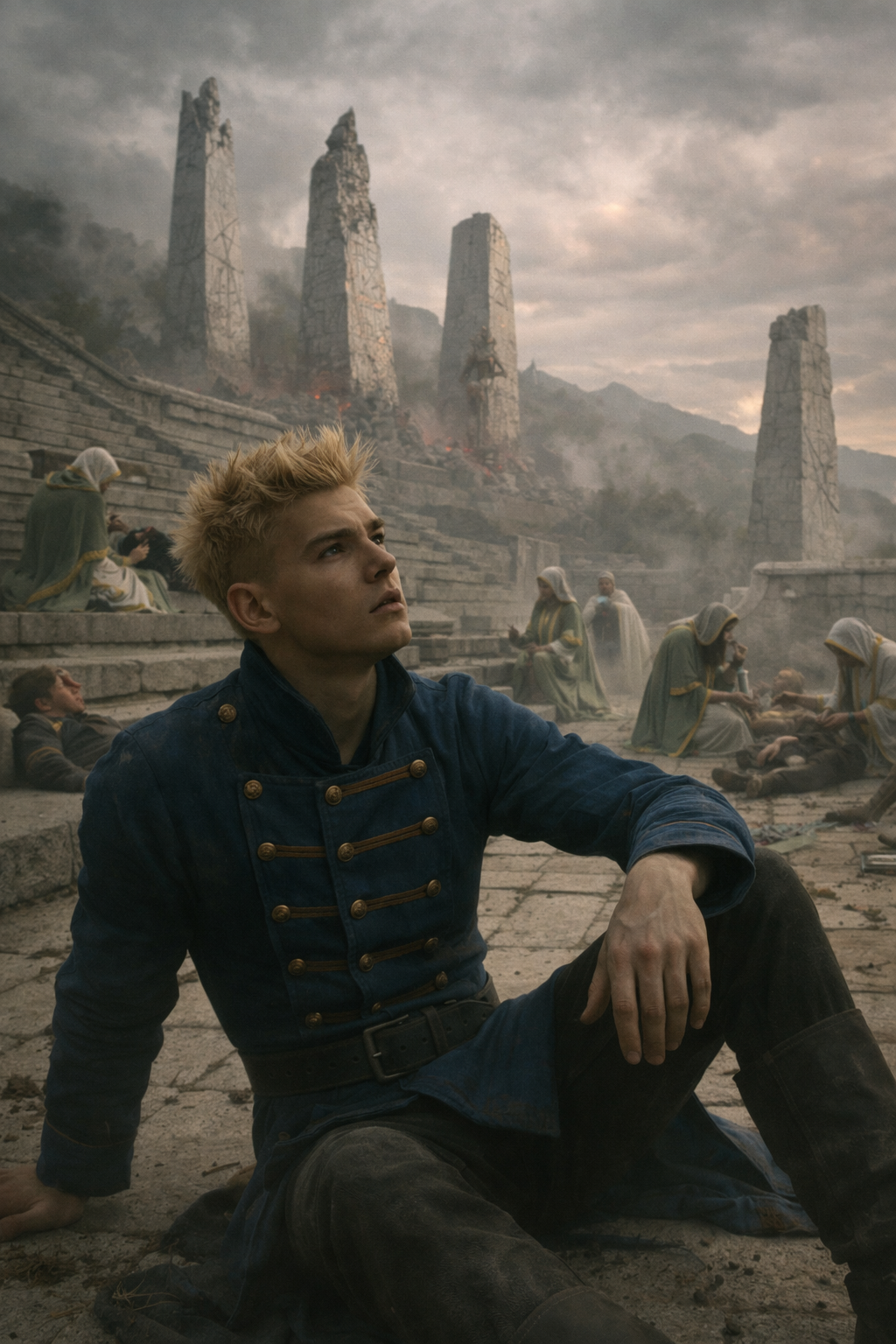 to see. All he could see were the tops of the obelisks supporting the protective barrier. The pedestals, which until recently had been smooth and intricately covered with runic symbols, were now shattered, charred and burnt. In addition, the one furthest to the right looked as if it had been cut in half.
